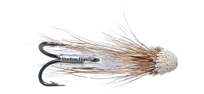 "This method involves hitching a small fly behind the head so that it retrieves at an angle to the current creating a wake on the surface. The same effect can also be achieved by boring a hole in the side of a small tube fly. This method is at its best in glides and V's where a strong current begins or ends. Polaroid glasses often enable the angler to see fish following the fly and can lead to some highly intensive and emotional experiences!"