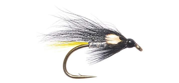 Derived from the Stoat's Tail salmon fly, this silver-bodied version has become one of the most popular of all sea trout night flies in use today throughout the British Isles. It is fished on floating and sinking lines. It can be tied on singles, doubles or trebles and as tube-flies, Waddingtons, snakes or needles. In the larger sizes, the hair from a squirrel's tail, dyed black, often replaces the hair of the stoat. The plain black hackle may give way to brighter colours of red, orange, yellow or blue, each fisherman with his preferred variant. All are successful. A truly great sea trout fly.