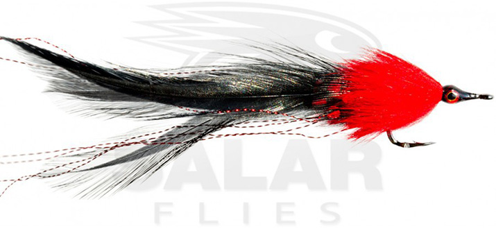 Tarpon Black Death – Unweighted – The original and still one of the most popular Tarpon flies available. Black & Red are very consistent colours. 3D eyes and extra long black tail hackles.